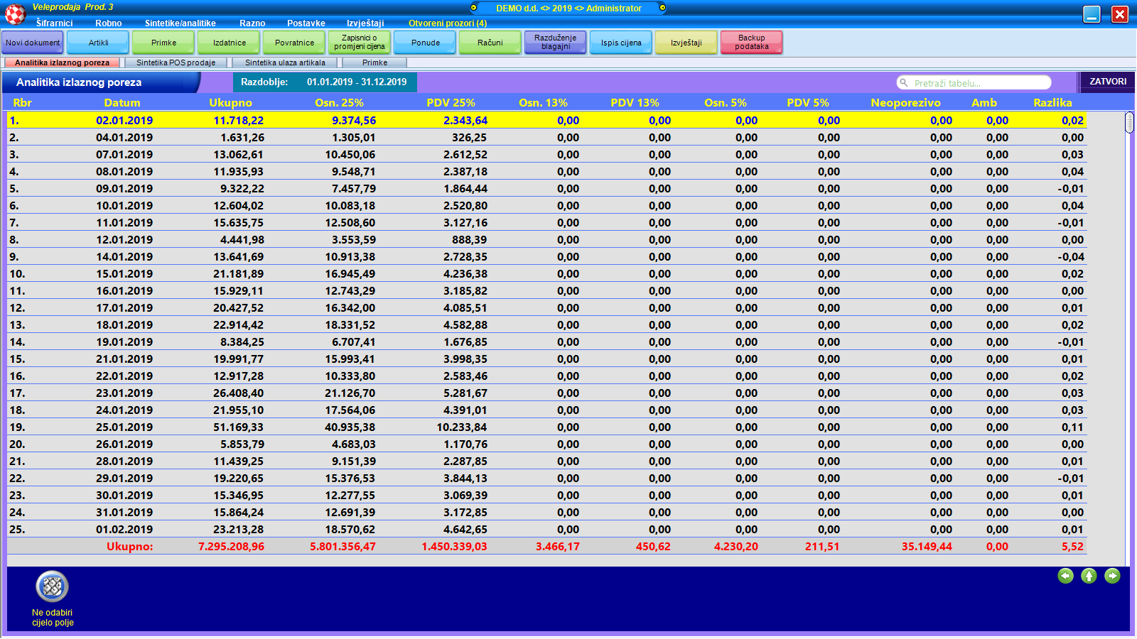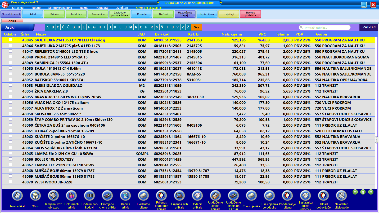 Program predstavlja cjelovito rješenje za vođenje kombiniranog veleprodajnog i maloprodajnog poslovanja uz rad s većim brojem međusobno povezanih skladišta/prodavaonica te neograničenom brojem prodajnih mjesta (PC Blagajne) i podrškom za rad (komunikaciju) s vagama, prijenosnim terminalima (ručni bar-kod čitači s mogućnošću spremanja veće količine podataka). Omogućava kombinirani veleprodajni i maloprodajni rad u jednom s automatskih prijenosima na skladište maloprodaje i natrag. U okviru rada s više prodavaonica, cijene se mogu djelomično ili potpuno usklađivati među prodavaonicama